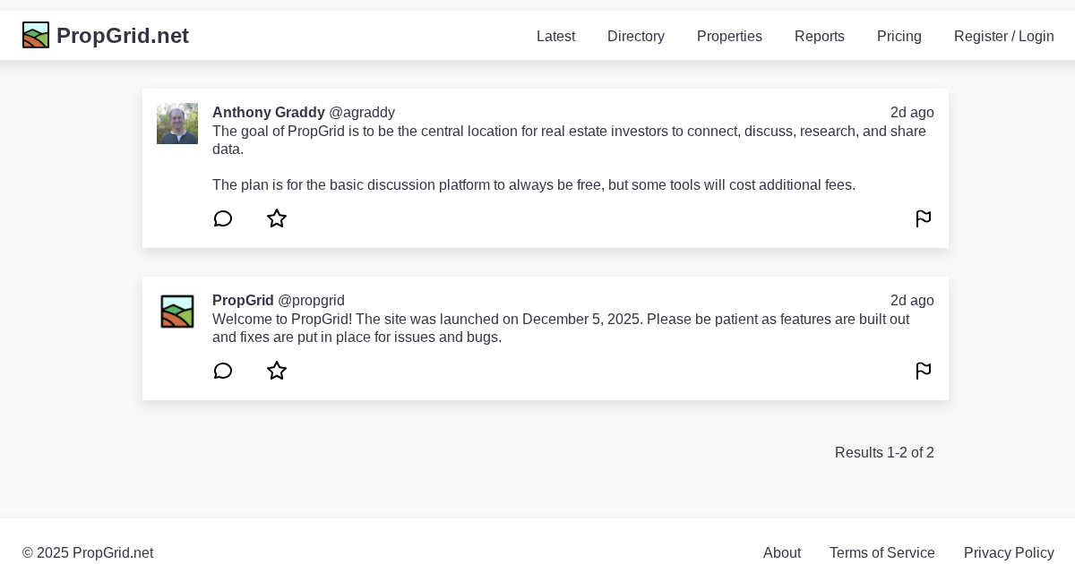 The goal of PropGrid is to be the central location for real estate investors to connect, discuss, research, and share data.